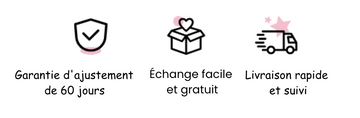 Nous offrons une Garantie d'Ajustement de 60 Jours. Si, pour quelque raison que ce soit, vous n'êtes pas satisfait(e), vous pouvez échanger ou retourner votre commande sans tracas dans les 60 jours suivant l'achat.