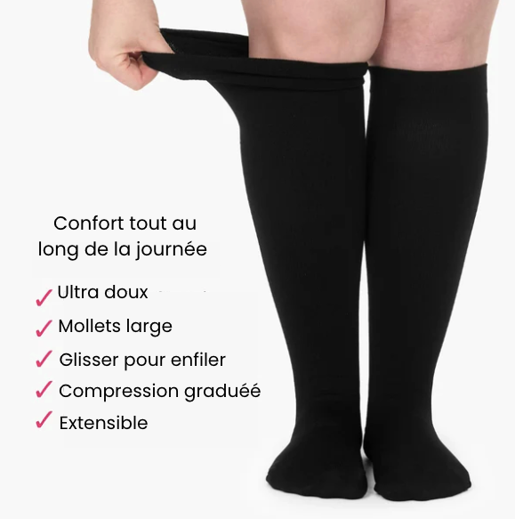 Des chaussettes de compression que vous aurez envie de porter chaque jour. Fini les modèles qui font mal : les nôtres offrent une étreinte douce et apaisante, un soulagement idéal contre le gonflement, les varices et autres douleurs.