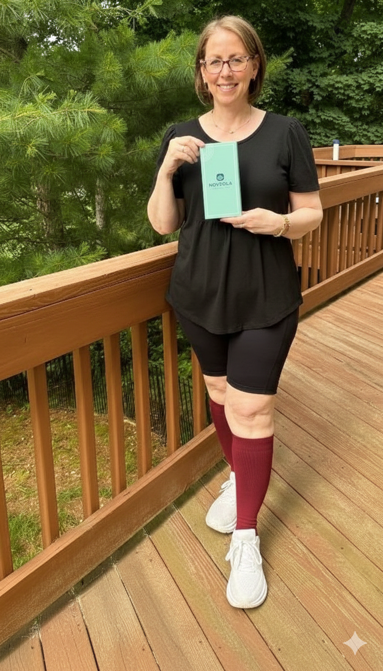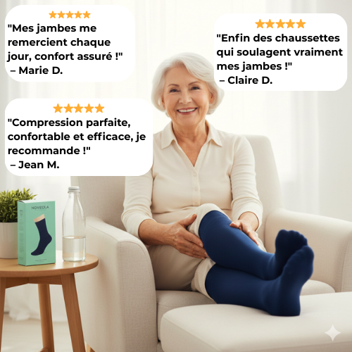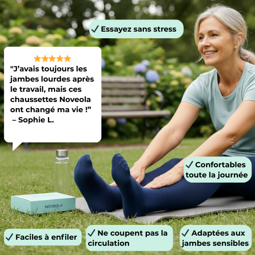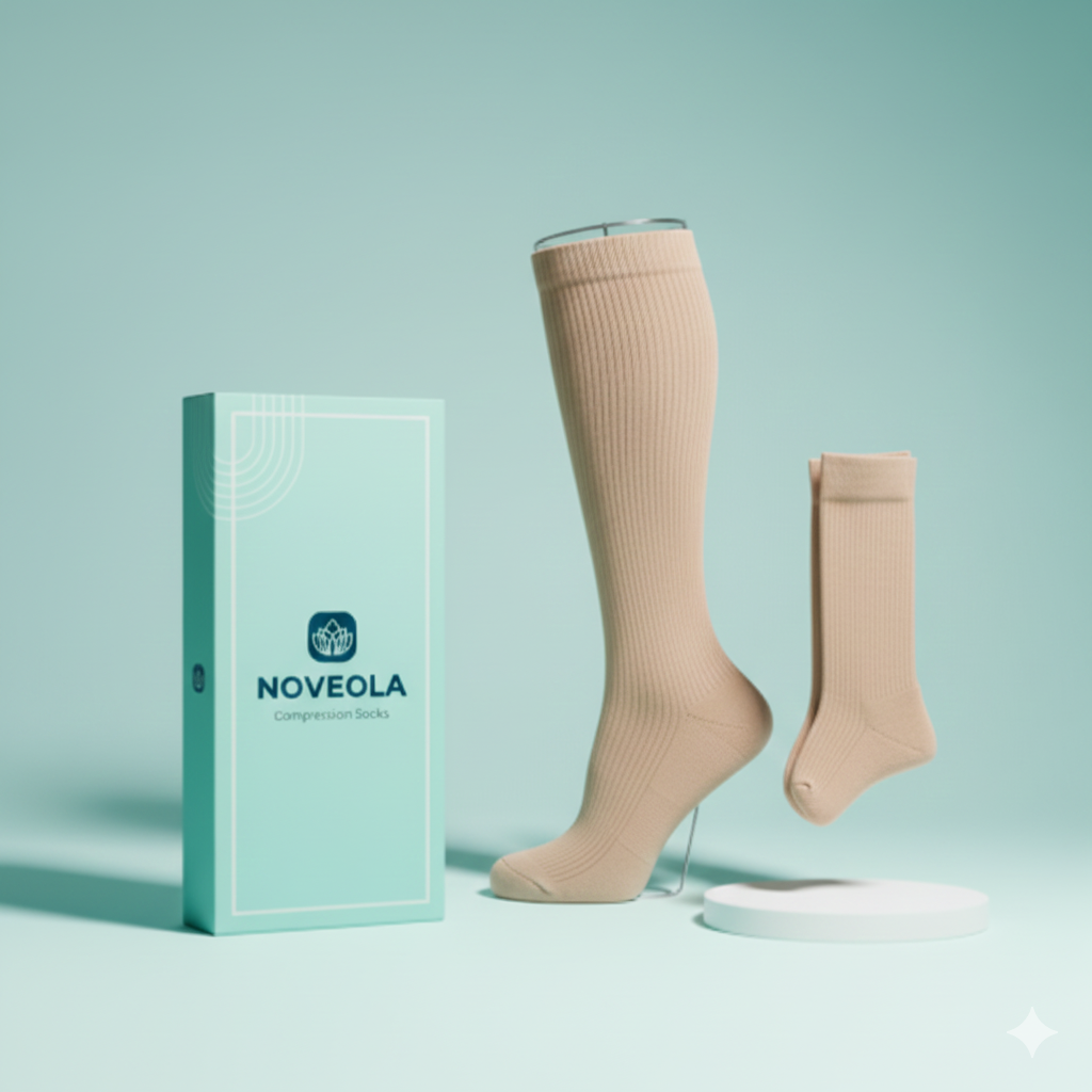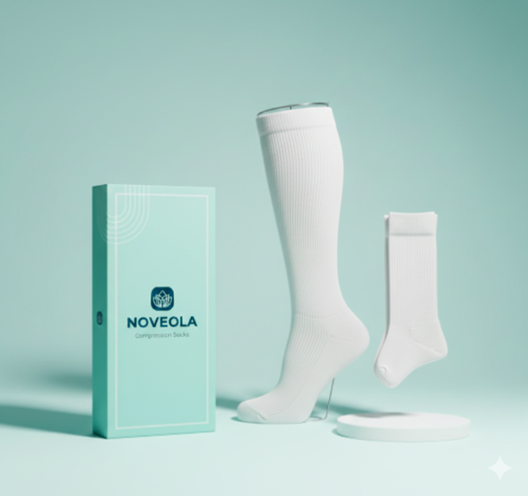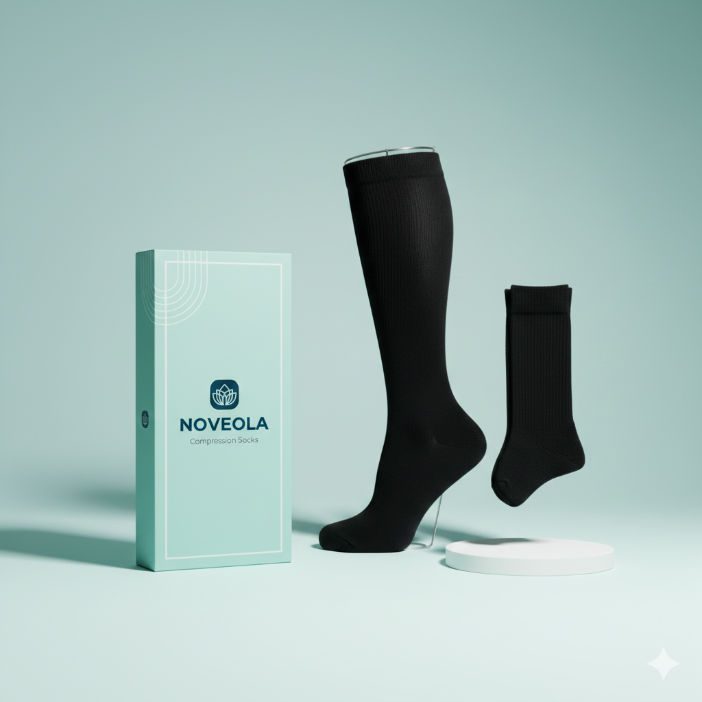 Les chaussettes de compression Noveola utilisent une compression graduée de 15–20 mmHg pour réduire le gonflement.