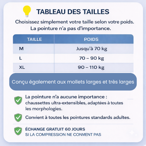 Enfilez-les le matin et ressentez immédiatement le soulagement . Elles sont ajustées sans être serrées, vous offrant moins de douleur, moins de gonflement et plus d’énergie tout au long de la journée.