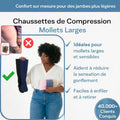 Nos chaussettes sont spécialement conçues pour les mollets larges, offrant une compression douce et confortable qui ne limite pas les mouvements ni ne coupe la circulation, pour que vous vous sentiez bien chaque jour.